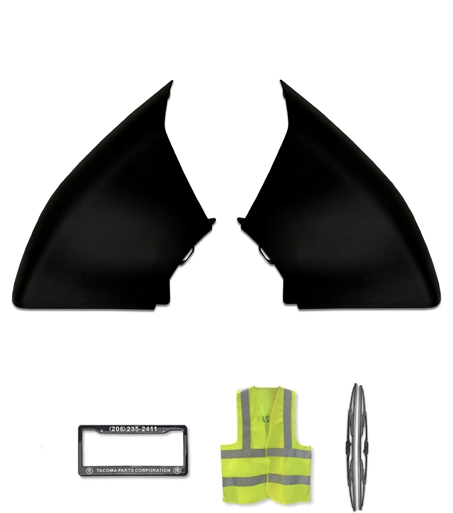 - Incluye portamatrículas, 2 limpiaparabrisas de 22 pulgadas y chaleco reflectante