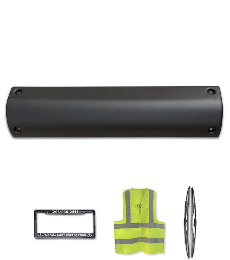 - The package includes: 1x Right Passenger Side Above Box Skirt Battery Cover and Peterbilt Truck Accessories: Logo Emblem, License Plate Frame, 2x 22" WIndshield Wipers and Kozak Vest