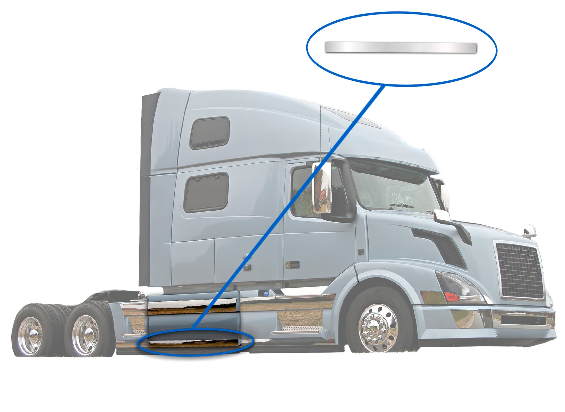 - Engineered for heavy-duty use, this chrome trim withstands harsh weather conditions, road debris, and long-haul demands, maintaining its integrity and style over time.
