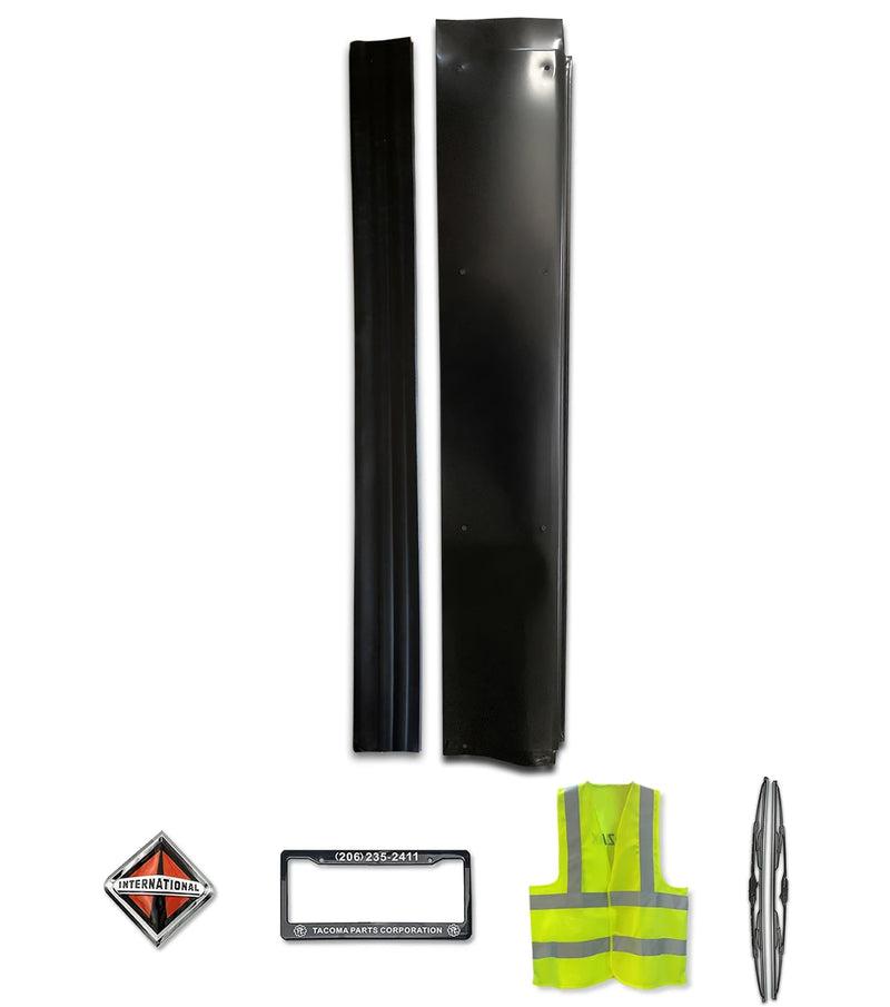 - Comes with International Logo, License Plate Frame, 2X 22 Windshield Wipers and Vest