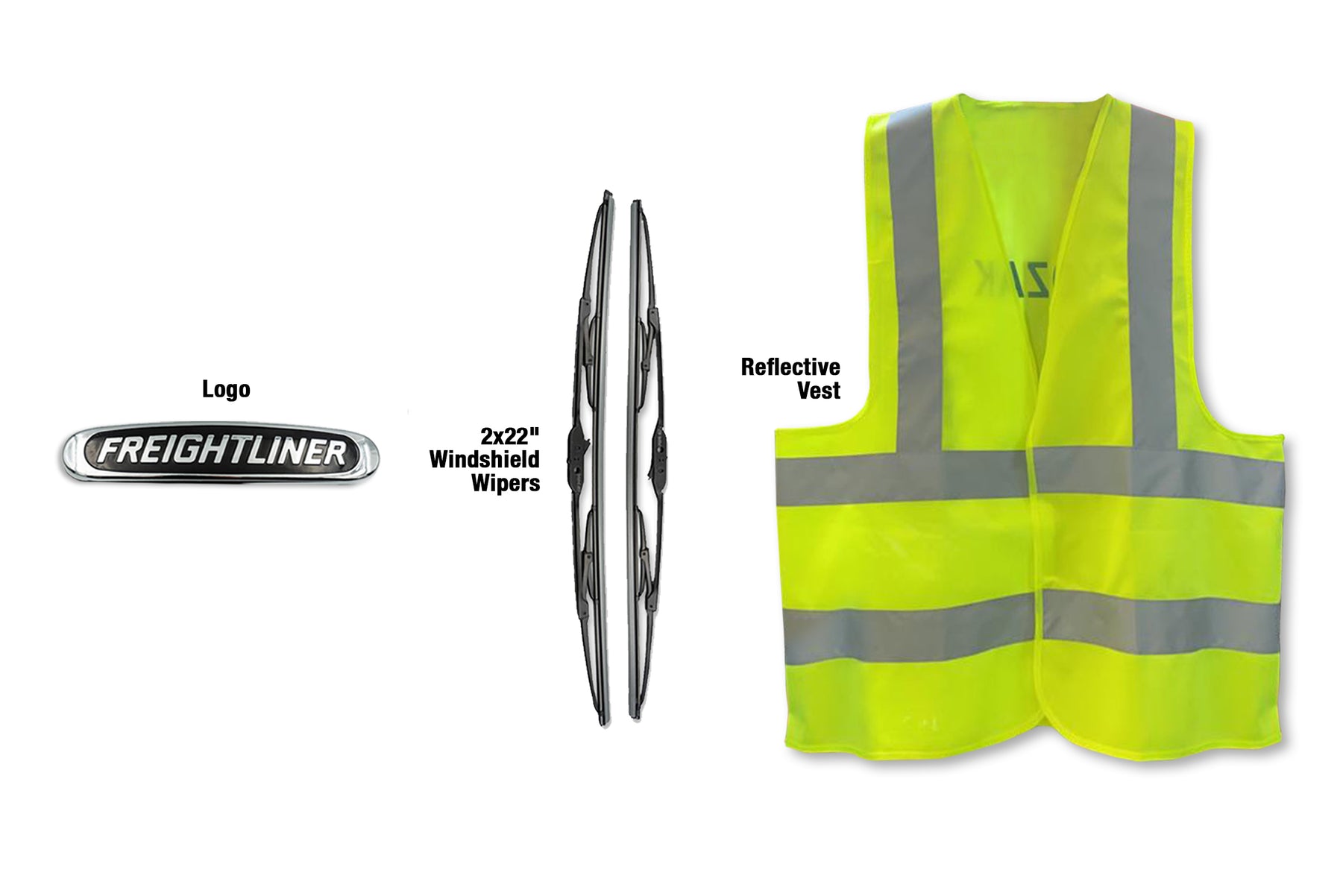 - Comes with Logo, 2x 22" Windshield Wipers and Reflective Vest
