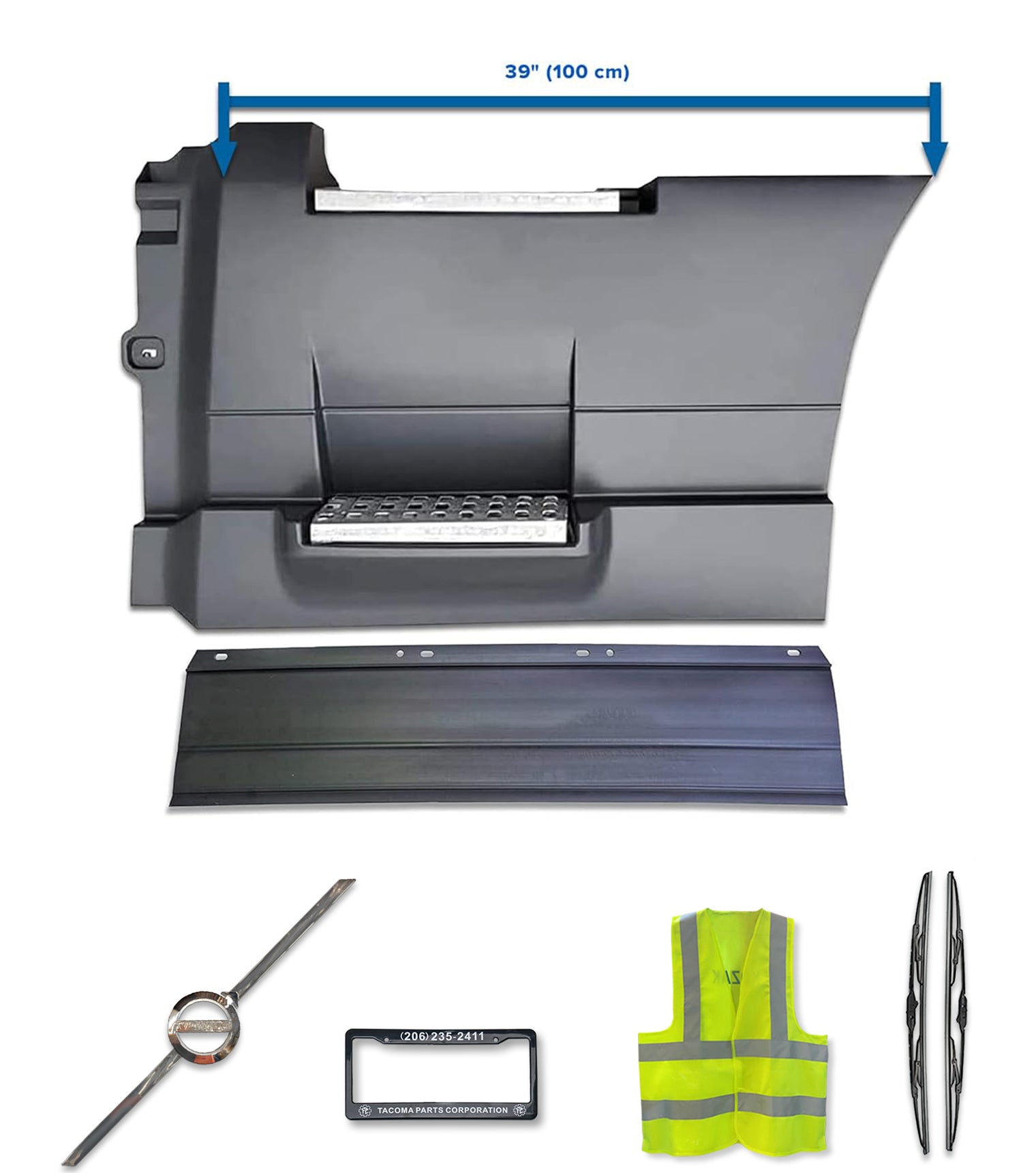 - Comes with Volvo Logo Emblem with Stripe, 2x Steps (upper and lower), 2x 22" Windshield Wipers, License Plate Frame and Vest