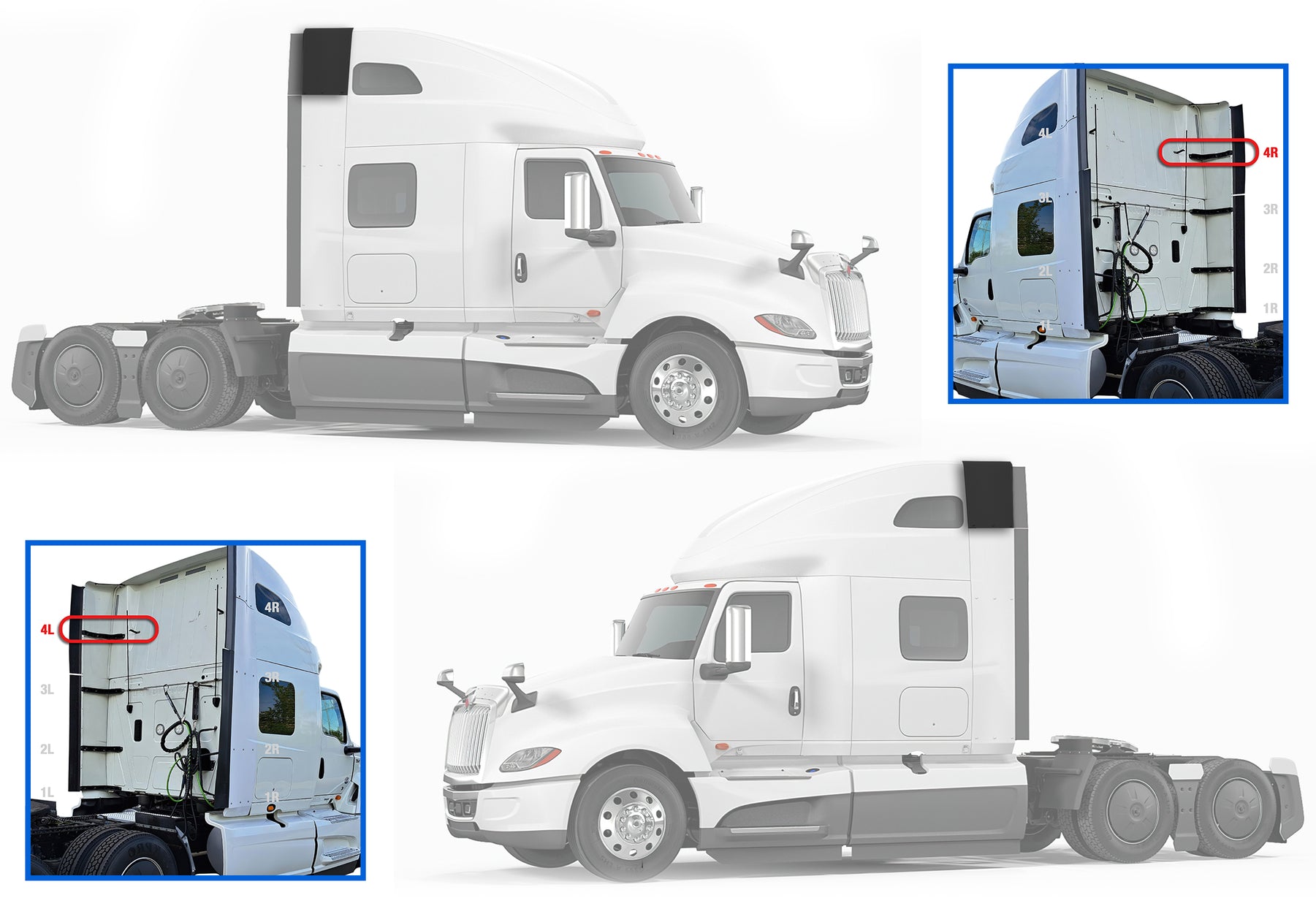 Top Wind Fairings Cab Extenders w/Brackets Compatible with International LT625